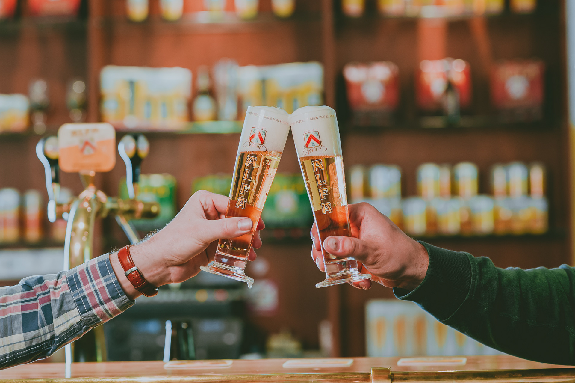 Reclamefotografie voor biermerk Alfa. Gefotografeerd bij de Limburgse brouwerij in Schinnen.
